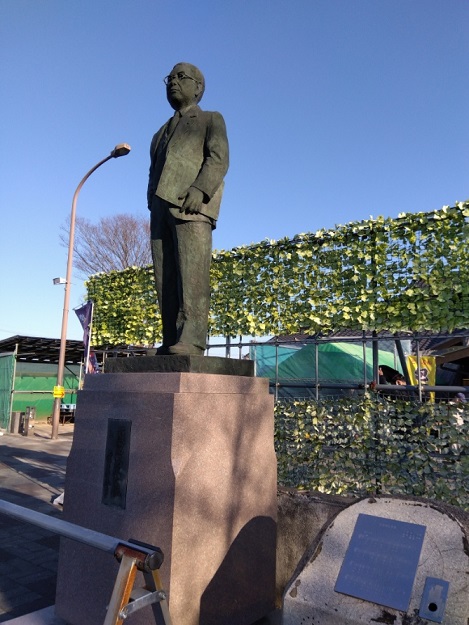 近くの道の駅にあった加須出身、東京芸大音楽学部長、音楽教育家の下総皖一(1898~1962)像。右下にあるのは彼の作曲になる「たなばたさま」の楽譜碑です。ボタンを押すと鳴る仕組みだったようですが、ボタンが無くなっていました。