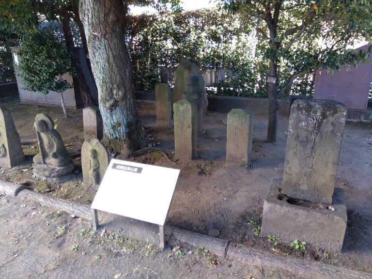 野外展示は100円の外ですが見て行きます。これは区内各地での工事等に伴って集められてきた信仰に関する石碑だそうです。右から二番目のは玉川上水に身投げした人たちを祀るもの。
