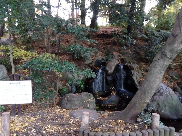 遅の井の瀧です。もともとは泉で、瀧は公園整備のときに作ったもの、ということです。現代の善福寺川の源流はこの瀧だということになっています。