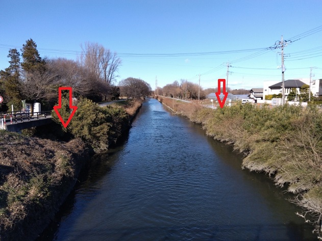 西の仮締切のところ(今はつながっていません)。見沼代用水(西)が流れています。