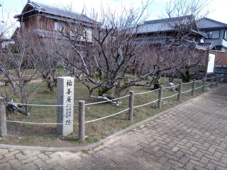 近世は祐善庵という建物があったようです。背景、伊勢地方の普通の家ですが、屋根の傾斜の緩いのがこの地域の特徴ですね。