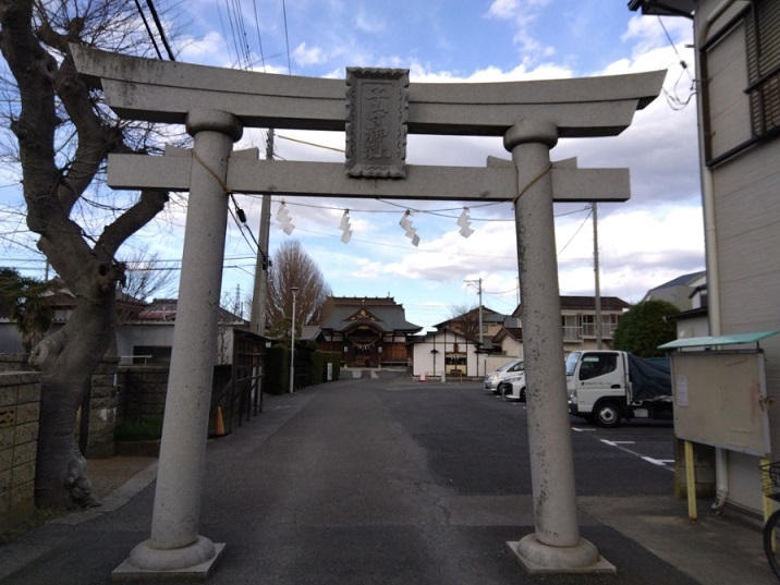 わたしが立っているあたりが房総往還。かなり奥に拝殿が見えます。