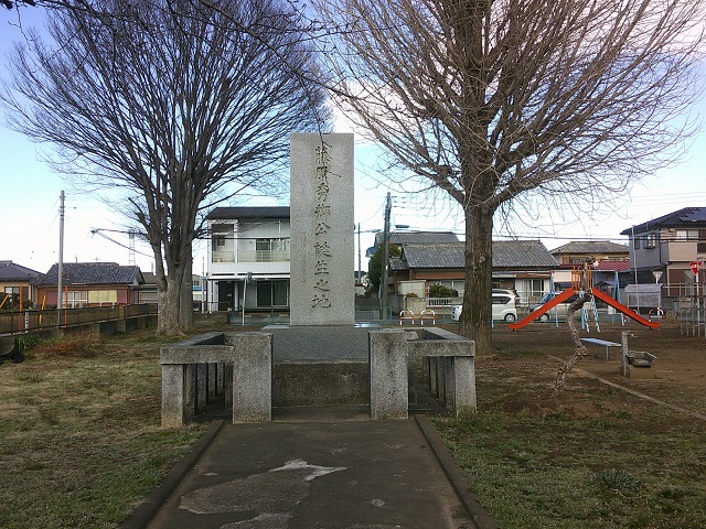 藤原秀郷公誕生之地、の題字は荒木貞夫陸軍大将。碑自体は昭和40年の建立のようです。