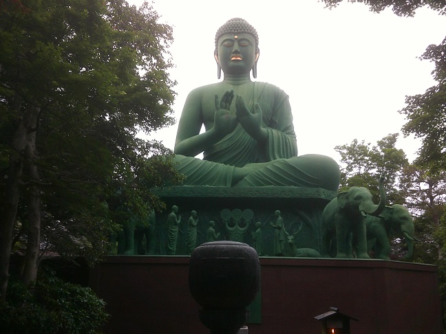 昭和62年のコンクリート像。いかにもバブル期の名作と称せられるにふさわしいであろう。黄金色のおくちびるとか、象やインドっぽい僧侶の像が周囲に並べられているところなど、当時世界に冠たる富裕を誇った我が国の文化のほどが推し量られる。(皮肉ではありません)