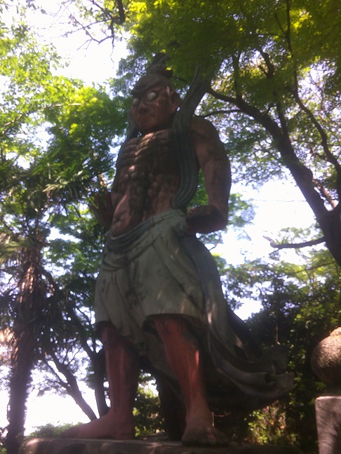 大仏さまのところまで昇る階段の途中におられる仁王像。もちろんもう一体もおられます。このコンクリートの白眼を見よ。君らは睨まれても通り過ぎる自信はあるのか。