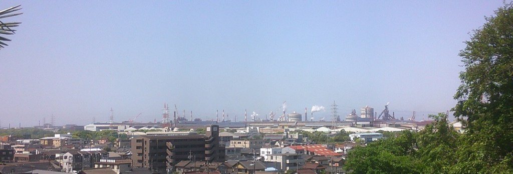 平洲くんはお寺の松の木に登って、伊勢湾とその向こうの紀伊半島を眺めていたそうです。いまはかっこいい工場があります。