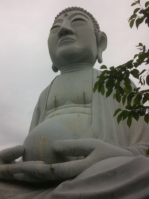 高台にあって、息をのむ大きさと美しさである。チュウゴクか台湾の男女の若者が見に来ていて、像の前に座って道教風のお参りをしていました。いい人だと思います。