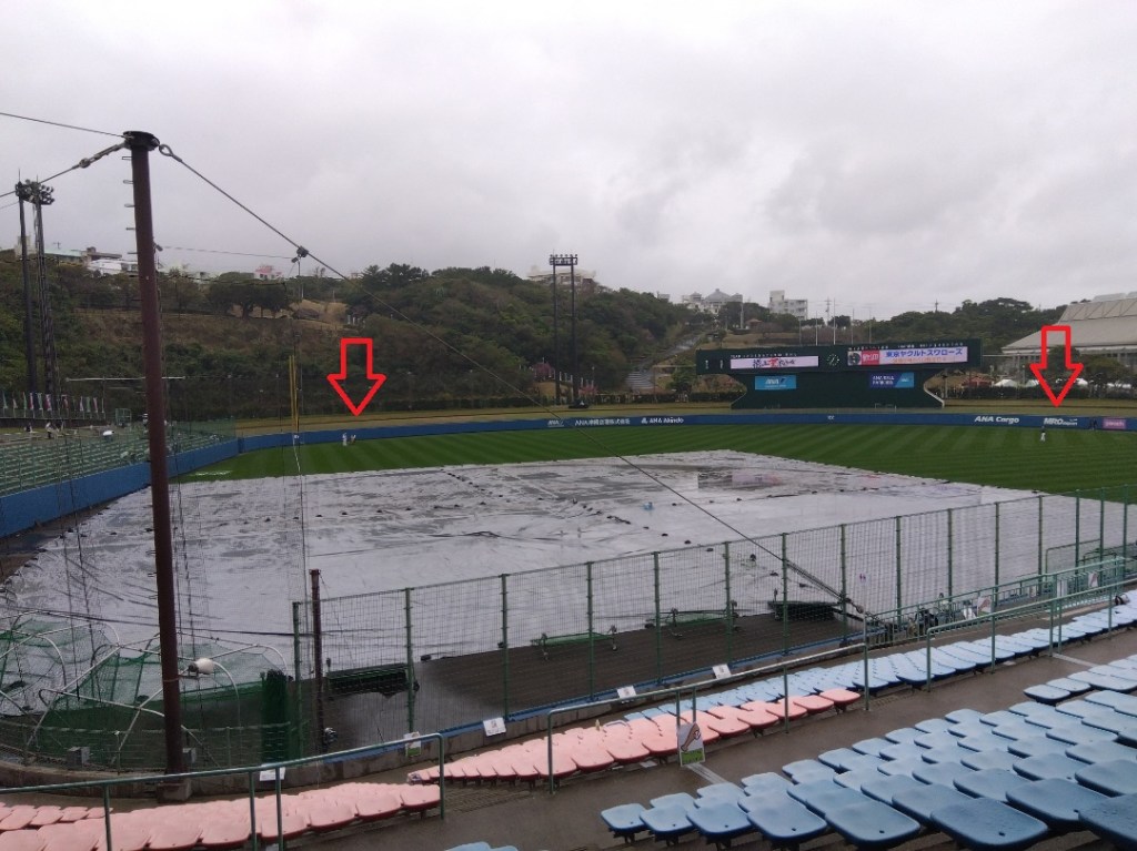 2月2日(日)・・・北谷アグリスタジアムで中日ドラゴンズを観察。いい天気なのでスタンドで居眠りしたりする。