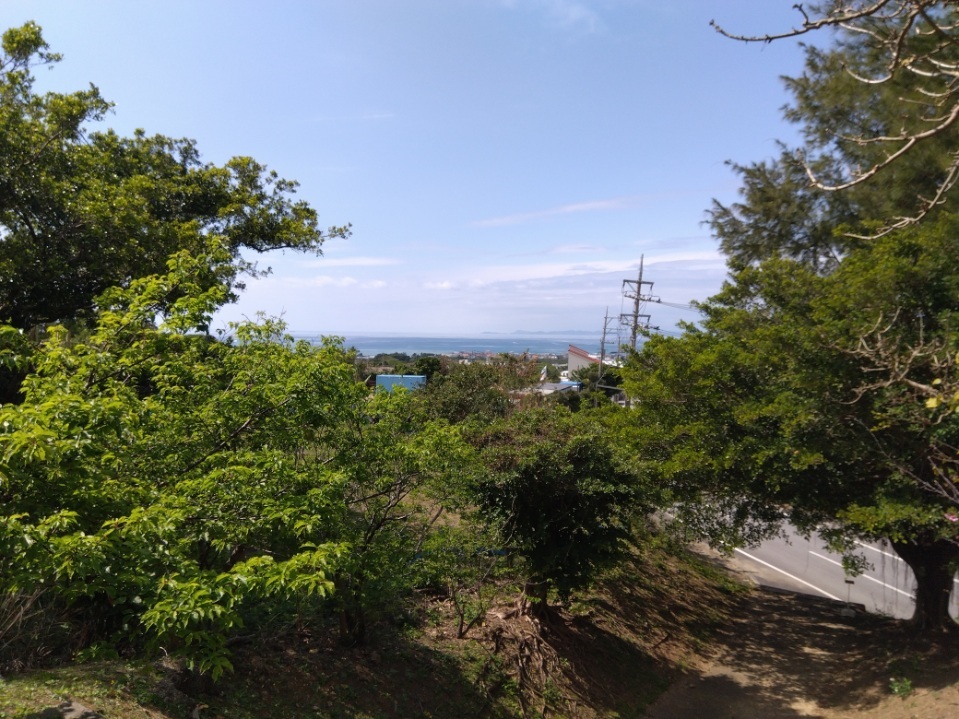 上の慰霊碑あたりから東シナ海方面を眺望す。豊見城海岸から慶良間の方が見えます。