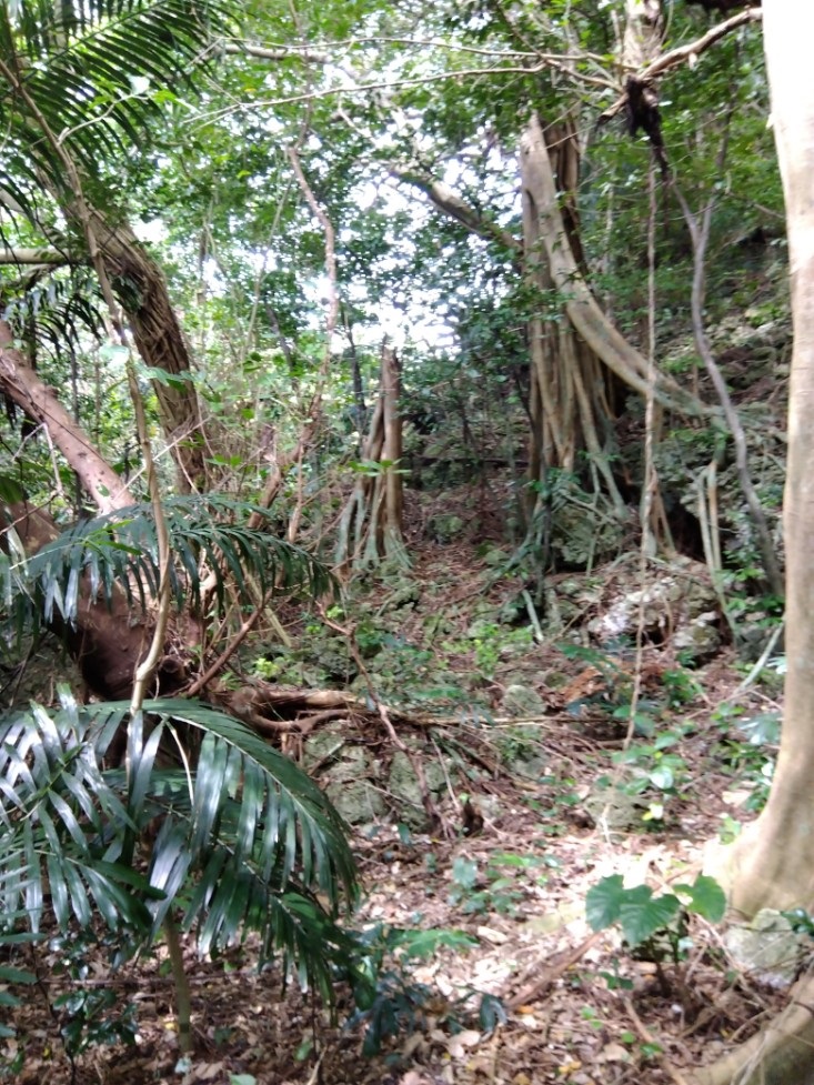 本土の中世城郭と比較できそうな縄張りになっています。一緒ようなやつらが作っていたのでしょう。植物度がすごいので確認がしづらいですが。