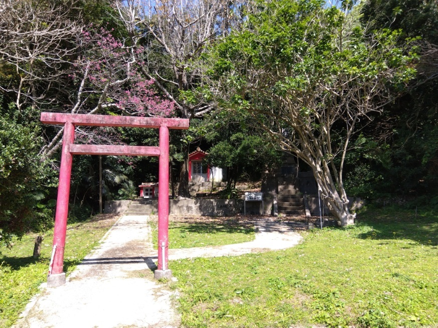 神社の東寄りの小道から入れます。中世南山のグスクシステムの一画を占めていた。