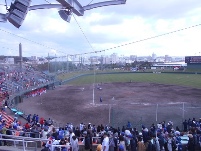 五回終了時です。今日は仲地目当てのお客も多かったと思います。ドラの試合でほぼ満席とは。