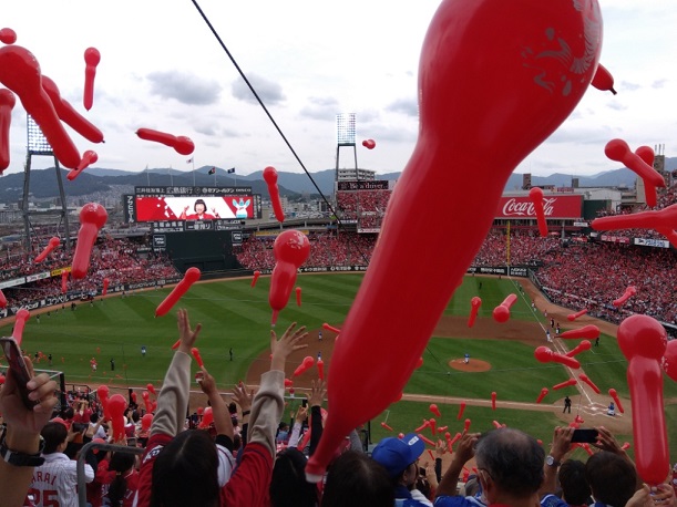 七回裏の風船が復活していた。膨らませるのに専用のポンプが必要なので、明日買うぞ。