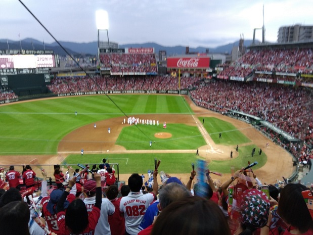コロナ前以来、というか、カープ三連覇の最後の年の日本シリーズ以来。見やすいし席はゆとりあるしそんなに高くないし、日本一の球場だといわれるのもむべなるかな、ですね。