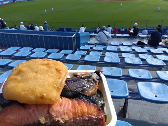 入れ替えの間に弁当を食う。ごはんを0.9合ぐらいに減らしてみたが、やはり腹が苦しくなる。不思議だ。