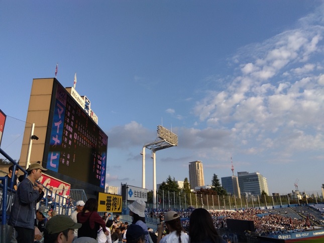少し雲の出て来た試合終了時だが、明日はどうなるのか。ちなみに肝冷斎はこれから良寛さんのところに行くので明日は来られません。