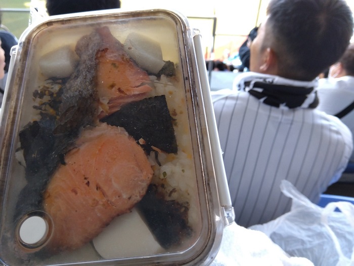 焼きしゃけに塩を振りまくってきたのでやたら美味い。