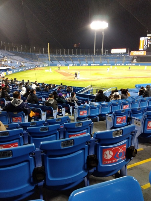 すごく寒いです。八回裏ごろ。縦長なのはスマホの画面を見ているふりをしながら撮っているからです。肩身が狭いので、次の機会にはちゃんと了承をもらうことにします。