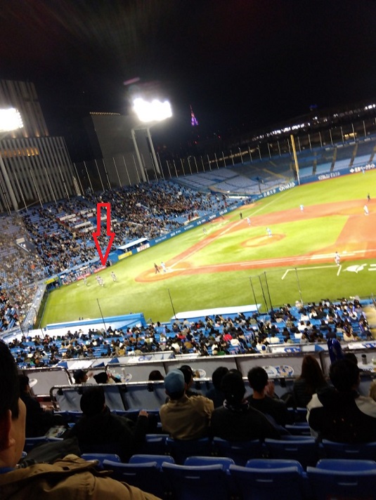 斜めになってなんとなくかっこいいショットですね。矢印、3ランで戻ってきた広瀬選手。