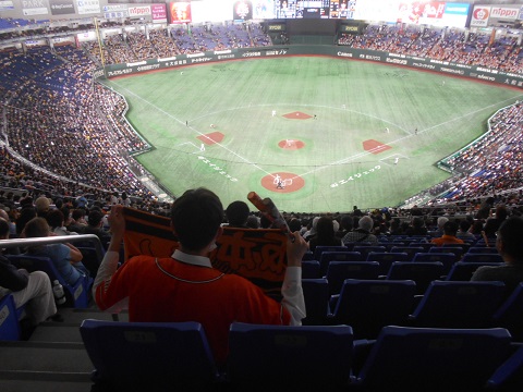 こんな高いところからです。もしかしたら霊的な存在となって見守っているのかも、と思いませんでしたか? 前のお兄さん、実に本格派のジャイアンツファンらしい人で、うるさかったが周りは気にしていた。いい人やなあ。