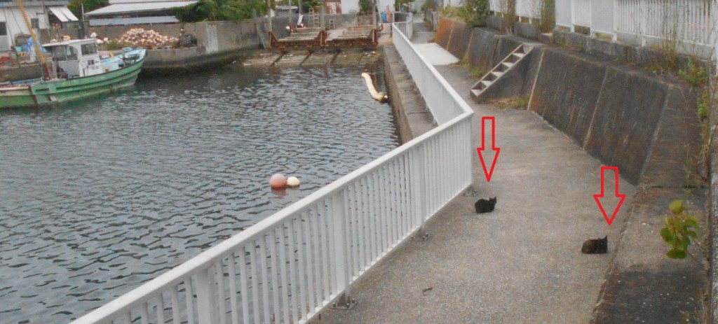 海岸沿いにいた兄弟ネコ。おそらく平日は工場の人たちの世話になっているのだと思いますが、日曜日で腹が減っていたのかこのあと追いかけてくる。名刺代わりに常備のカリカリを与えると早く寄こせとひっかいたり喧嘩したりしはじめ、もっと寄こせと騒いできたので逃げてきました。