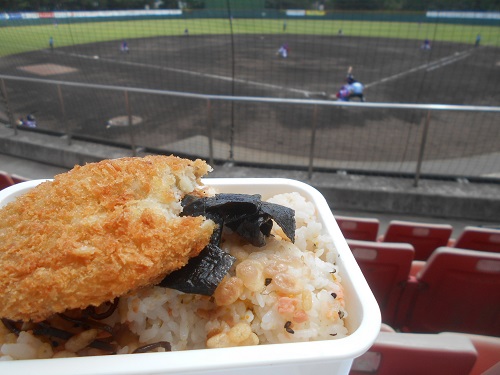 熱中しないように、冰1.1キロを買ってぼりぼり食ってましたが、五回の整備中にかき氷買ってきた。場所も少しかえました。ファウルボール飛んでこないかなあ・・・ああなにも考えられないなあ・・・。