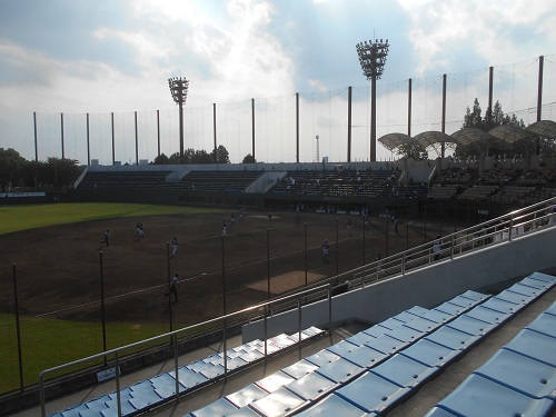 と思って上尾までやってきました。序盤の投手戦はよかったねー。茨城のスターターのキロメ、ストレートも変化球もコントロールも素晴らしい。三回パーフェクト奪三振5。こいつは早いうちにNPB行きでしょう。茨城はしばらく見ないうちに、いい外国人選手で固めたチームになっていました。捕手のコリナ、四番ウレーニャ、三塁のエルナンデス、途中出場のネルエ、みんなさまになっていて、とにかくでかくていいね。武蔵の四番阪口もいいですね。両チームショートがよかったね。など、今日は失策も無いし、目をみはるようなファインプレーもあるし、ホームランもあるし、これぐらいのレベルでやってくれれば見に来る値打ちもあろうというものでした。