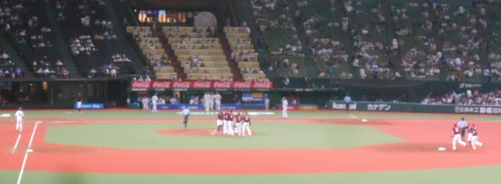 試合開始前はまだ開始前だから、所沢のやつらがこれから大挙してくる、と信じていたが、ずっとこの状態。売り子の女の子が「今日は昨日の1000人減だって」と試合前に話していたので、昨日の土曜日もこの千人増ししか来ていなかったのか・・・。
