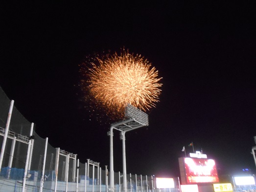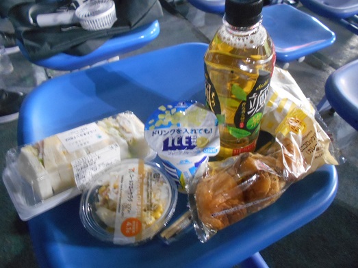 試合終了。この前の人、琵琶法師のような髪型?をしていますが、一人で来てときおり写真を撮って、ナイスプレーにはどちらにも拍手を送って、一人で帰っていかれました。ベイスにこんな立派なファンがいるとは。