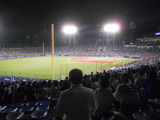 今日は供養されたのか、ベイスファンが減っています。しかし七回に「満員御礼」と言ってたので霊的には満員なのかも。