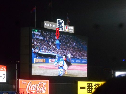 七回にバク転なども見せる「尾張の巨匠」ドアラ。岡林の連続試合安打が昨日日本記録まであと3で途切れてしまい、ドラファンにはもうドアラと柳ぐらいしか無いであろう。