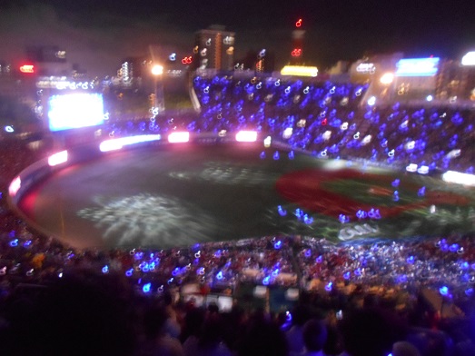 五回裏のダンスパフォーマンスタイムだ。球場を暗くするのだ。