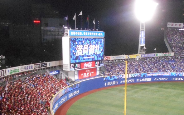 とかなんとか言っているうちに、試合終了。ベイスタファンはさすがに七回ごろからどんどん帰っていってました。