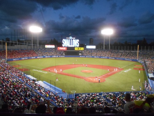 このカード、広島ではカープが一敗だけ、神宮ではスワロが一敗だけ、カープが勝ち越しているのは地方球場でのスワロ主催試合に勝ち越したから、という超内弁慶状態になっており、隣のカープファンのおじさんが言ってましたが、神宮球場でのヘビ=カエル関係は「去年までとおんなじじゃ」です。