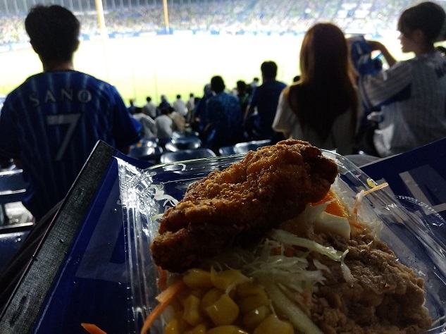 両チームのチアーのリレー対決、他の球場では同じことやっても「ああやってるなあ」なのですが、ベイスは「ディアーナ」を誇りにしているので、大声援。神宮初勝利で盛り上がってました。さすがはベイスファン。