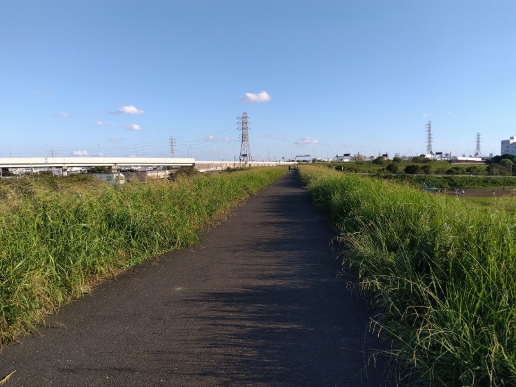 普段はもう一段下で見ているんですが、今日は少し上にしました。草は下よりひどいが、少し見やすくなります。もう少し上がると道路なんですが、そこはお子様や淑女方もお見えになるお席(路上ですが)なので、わたしどもは野性の中で見せていただいております。