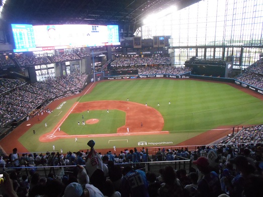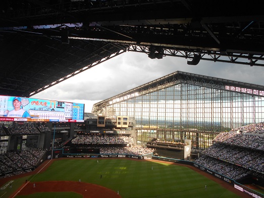 雨になるという予想で七回ごろにドームを閉める。1イニング半ぐらいかかりましたが、月食観測みたいでおもしろかった。