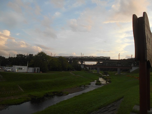駅までの近道は線路わきを通っています。少し遠回りして輪厚川(わっつがわ)のほとりを歩いてみました。北海道はいいなあ(夏は)。