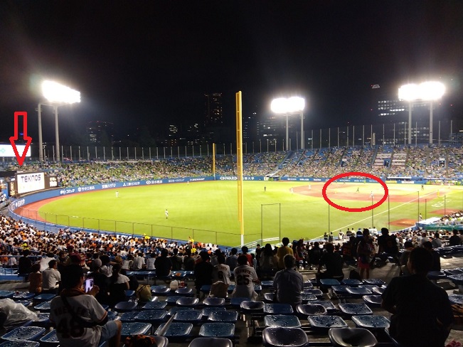六回、同点ホームランで塁を回られる村上さま。このバックスクリーンの上を越えてしまいました。ひさしぶりで神的な打球でした。
