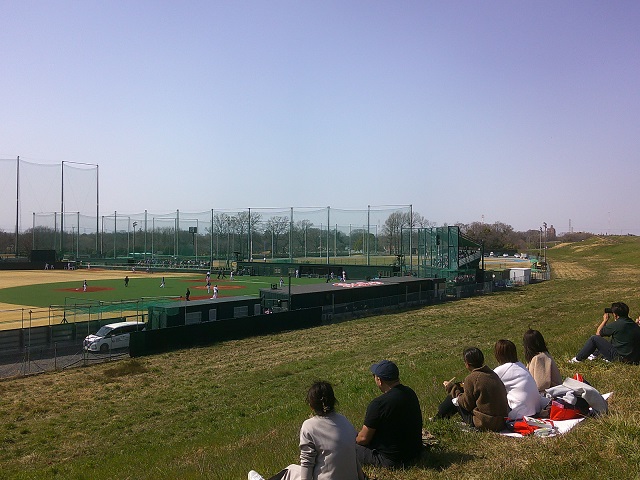 イースタンリーグ開幕戦なので先週より多い。アルビレックスファンの人も、スタンドには入りづらいからかおカネが無いからか知りませんが、相当来ていた。