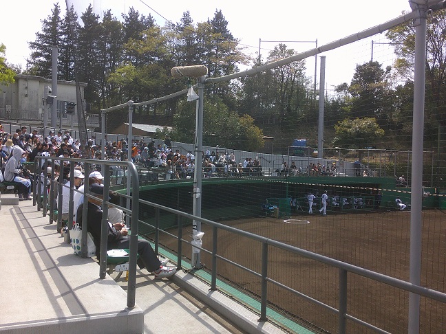 こんな場所で見れます(2000円)。投手のコントロールと主審の苦心がよくわかります。左下の黒いのは前の人の帽子。