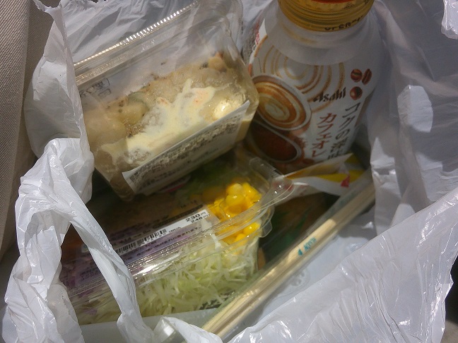 毎日炭水化物だけではいかん、と思い、今日は栄養バランスを考えて、コンビニでおにぎり弁当とサラダ✕2を買ってきましたが、こんだけで1200円以上。やっぱり炭水化物弁当にしないと財政が持ちません。