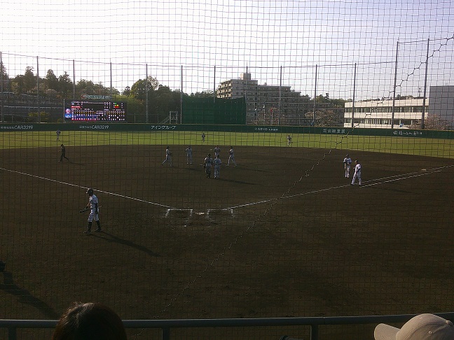 六回は二死からライオン浜屋が普通の投ゴロをお手玉してさらに一塁暴投で二死二塁、次に遊ゴロを滝沢がエラーして二死一三塁、郡の左前打でたなぼた先制点。しかし、九回は、馬場が二ゴロ失と捕前安打(山瀬が拾って何処にも投げられなくなった。ファーストベースをチェックしてませんでしたが、おそらくセカンド中田のカバーミス)、犠打で一死二三塁から滝沢安打で同点、さらに一死二三塁で代打・長谷川が二直併殺で同点延長に。この時点で15時45分だったので、ほんとに予定どおりだったのに、いろいろしめし合わせて困らせてきてるようにさえ感じる九回裏でした。