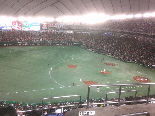 試合終了は二死一二塁から萩尾の遊ゴロ併殺でしたが、この一塁はどうみてもセーフ。リクエスト映像が三種類出てきましたが、ぜんぶセーフ。それなのにアウト判定覆らず、リクエスト失敗。得点差からみて諦めろよ、ぷぷ、とか、ジャイ憎しとかのファンやマスコミと違ってわたしは野球を観に来ているので、これは納得いかない。何を見てアウトにしたのか、場内に説明してほしい。