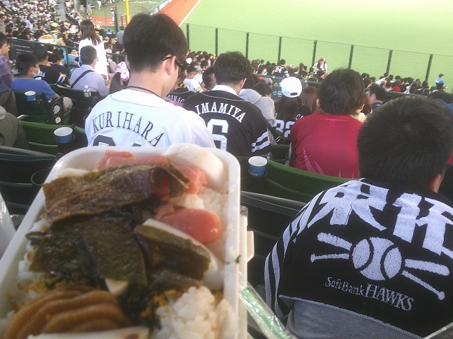 六回は一死満塁から中村サードゴロ、サードリチャード三塁ベースを踏んで一塁転送するも中村が早く、この間に三走がホームイン。後ろのホークスファンが言う通り、この展開ではバックホームシフトを敷くべきでした。でも、ホークスは対ライオンズ6連勝中ですから、まあ一点も取れなかったらしようがないか、ぐらいの気持ちだったのかも。