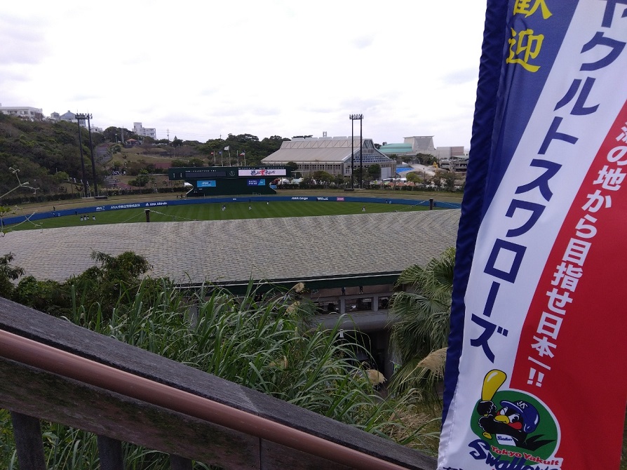 2月24日は、まず浦添のスワローズを見に行った。つばみが「何も変わっていない、大丈夫だよ」とブログで謎めいた宣言をしていたとおり、半旗も何もありません。そりゃそうか。つば九郎神社も維持されていました。
