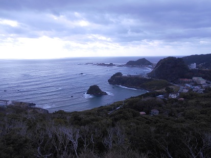 展望台から見る。鴨川松島とその向こうが仁右衛門島。