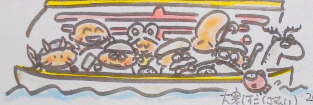 「さっきのは阿弥陀如来が衆生を救おうとして四十八の願い(例えば「すべての人を極楽に迎え入れなければ、また生まれ変わってくるぞ」など)を立てたのは有名ですが、その願いのことを、浄土に運んでくれる「いかだ」ともいいます。そのいかだを漕いでいる音だったんですよ」