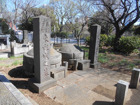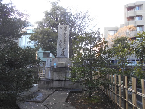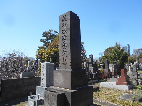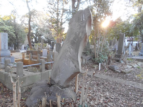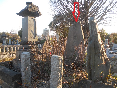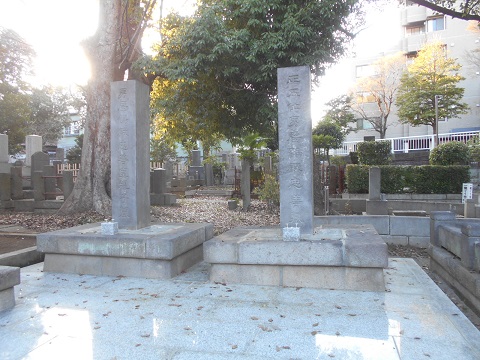 右手に板碑とともに立ってる細長いのが井上頼圀、神田生まれの国学者、国学院大創設者の一人。左の二本のうち右側は上村清延、薩摩・徳の島出身のドイツ文学者、一高・七高・浦和高などで教鞭を取る。おそらく単なるお隣さんというだけで学問その他での関係は無さそう。