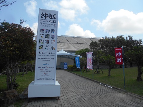 昨日の夜にこちらにまいりました。今月定年退職の人のところに挨拶に行った後、沖縄浦添市民体育館(スワローズキャンプの雨天練習場にもなってます)で、2023「沖展」を鑑賞しました。2013年からほぼ毎年見に来てますが、他のジャンルはともかく、工芸や染織はすばらしいですよ。なお、織物コーナーにこの一年で物故された会員の方の遺作の展示がありましたが、お二人が大正十年と十一年生まれ、101歳と100歳だったので、すごいと思いました。まあでも最近では「すごい」ということも無いのかも。